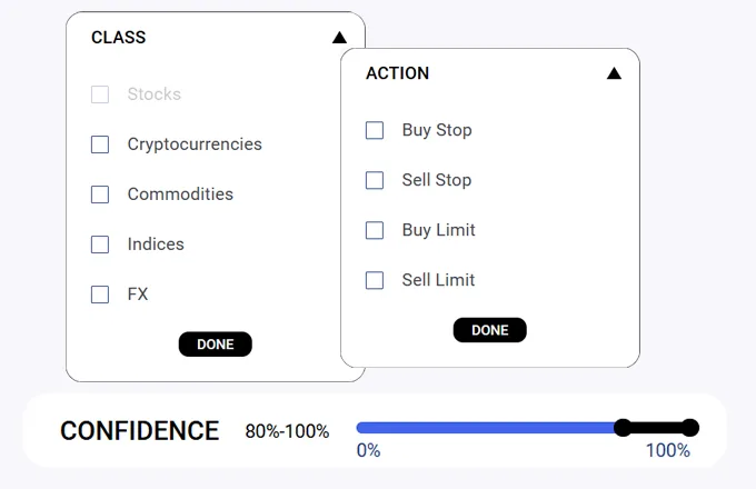 Get up to 50 daily trading signals, powered by human expertise and AI, delivered directly to your trading platform. Featuring precise entry, target, and stop levels, these signals are perfect for traders looking for a seamless, hassle-free experience.